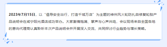 【咸寧站】“倡導(dǎo)安全出行,打造千城萬店”神州風(fēng)火輪智能防扎自修復(fù)輪胎產(chǎn)品說明會(huì)
