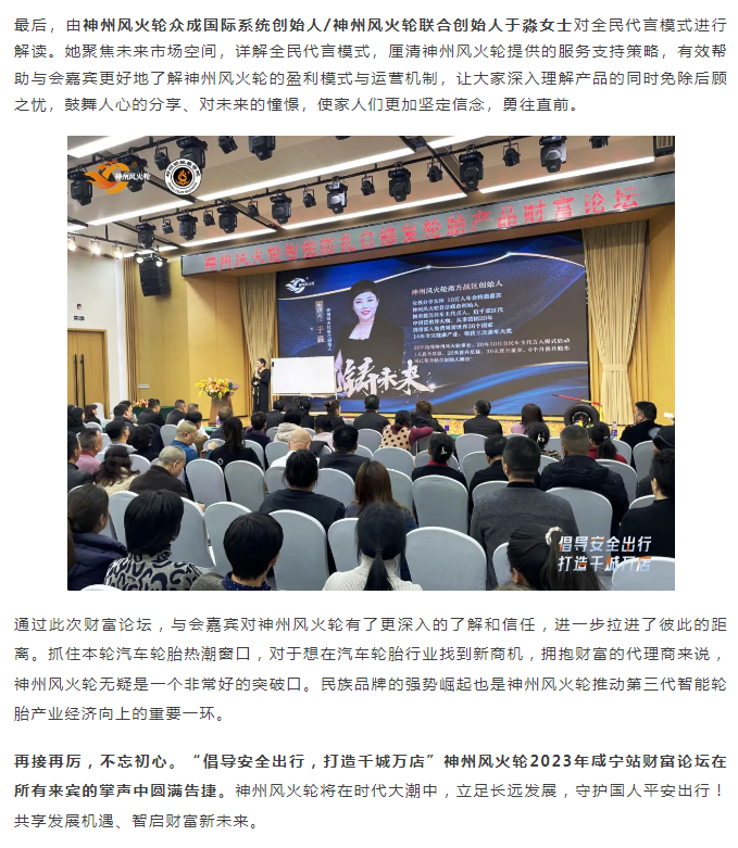 【咸寧站】“倡導(dǎo)安全出行,打造千城萬店”神州風(fēng)火輪智能防扎自修復(fù)輪胎財富論壇